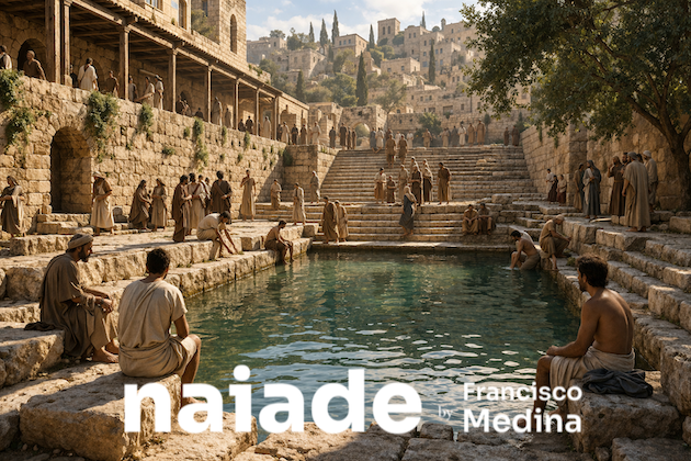 — Não aqui! — não entendi e ela insistiu — Olhe para trás! — Eu não reconheci, e ela continuou: — Aqui é a Piscina de Siloé. E eu olhando e recordando… deixei escapar um desabafo sonoro.