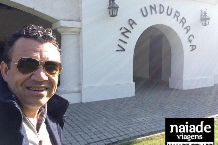 Vinícola Undurraga no Chile foi a primeira de nossas visitas em nossa viagem pelos vales e vinhedos do Chile. Na foto acima estou na Entrada da propriedade em maio de 2015. Canal