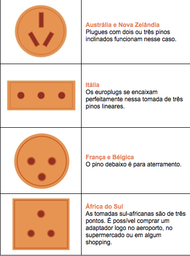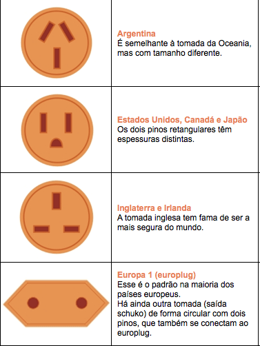 Para não correr o risco de ficar sem bateria no celular, notebook, tablet ou até mesmo de queimar seus equipamentos eletrônicos com uma sobrecarga na voltagem, é importante se informar a respeito destes padrões nos países por onde vai passar.